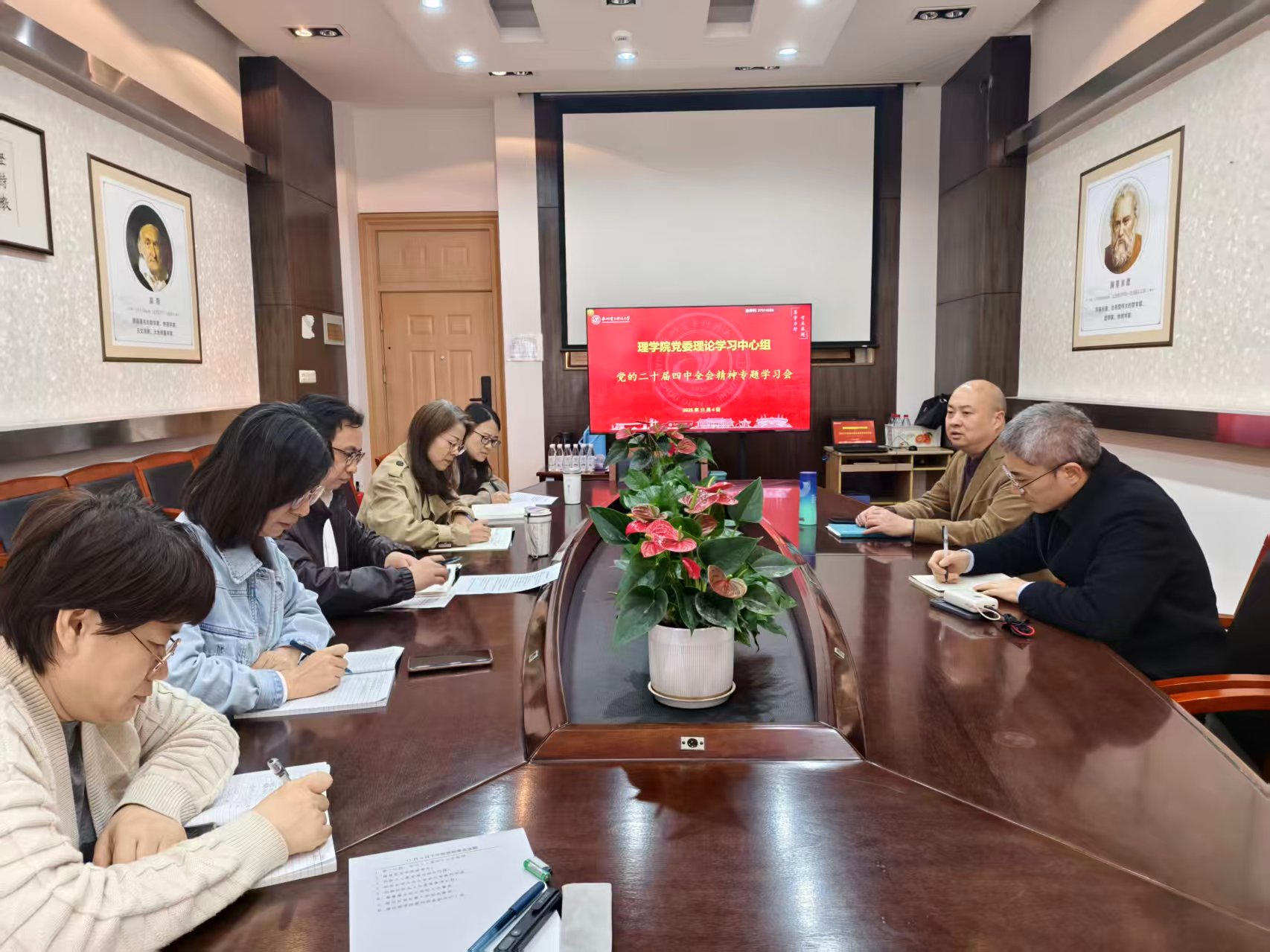 11月4日下午,理学院党委理论学习中心组在6教南432会议室举行党的二十届四中全会精神专题学习会。学院党委书记吴一桥,院长邓重阳,党委副书记兼纪委书记孟金环,副院长李源、王阳,党委委员覃森等参加会议,吴一桥作主题发言。