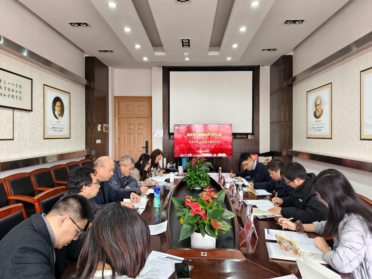 11月24日下午,理学院党委理论学习中心组在6教南432会议室举行习近平法治思想专题学习会。学院党委书记吴一桥,院长邓重阳,党委副书记兼纪委书记孟金环,副院长李源、王阳,党委委员覃森等参加会议,孟金环作主题发言。校党委第一巡察组、意识形态专项巡察组成员列席会议并开展旁听巡听。