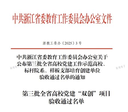 近日,浙江省教育厅印发《关于公布第三批全省高校党建工作示范高校、标杆院系、样板支部培育创建单位验收通过名单的通知》,理学院党委顺利通过全省高校党建工作“标杆院系”验收,标志着学院党建工作与事业发展深度融合迈向新台阶,为学院高质量发展筑牢红色根基。